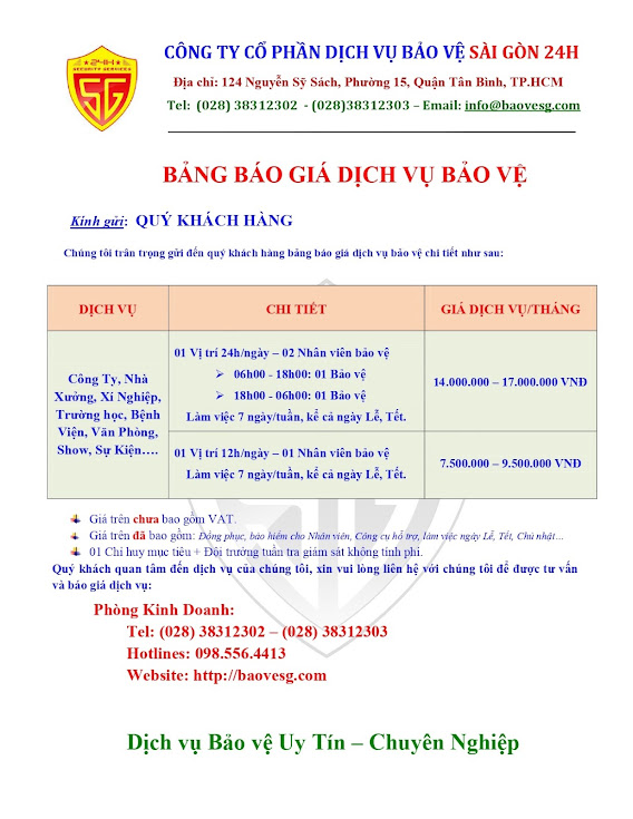CÔNG TY CỔ PHẦN DỊCH VỤ BẢO VỆ SÀI GÒN 24H